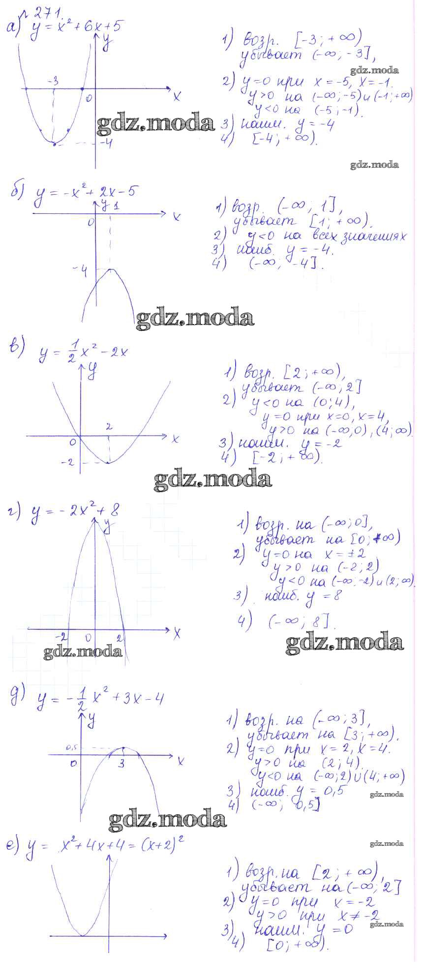 ГДЗ решение к заданию № 271 Алгебра 9 класс Дорофеев Г.В. Просвещение, Просвещение 2016, 2019 ФГОС бесплатно на гдз.мода!