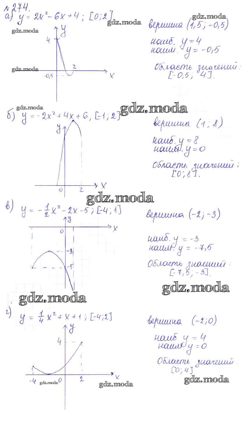 ГДЗ решение к заданию № 274 Алгебра 9 класс Дорофеев Г.В. Просвещение, Просвещение 2016, 2019 ФГОС бесплатно на гдз.мода!