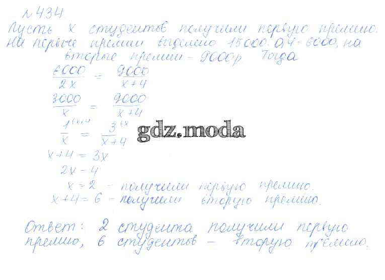 ОТВЕТ на задание № 434 Учебник по Алгебре 9 класс Дорофеев