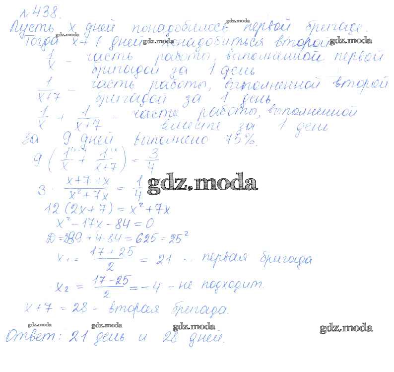 ОТВЕТ на задание № 438 Учебник по Алгебре 9 класс Дорофеев