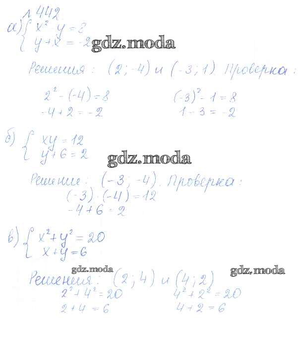 ОТВЕТ на задание № 442 Учебник по Алгебре 9 класс Дорофеев