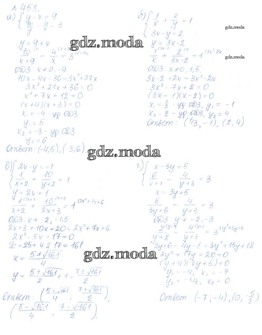 ГДЗ решение к заданию № 458 Алгебра 9 класс Дорофеев Г.В. Просвещение, Просвещение 2016, 2019 ФГОС бесплатно на гдз.мода!