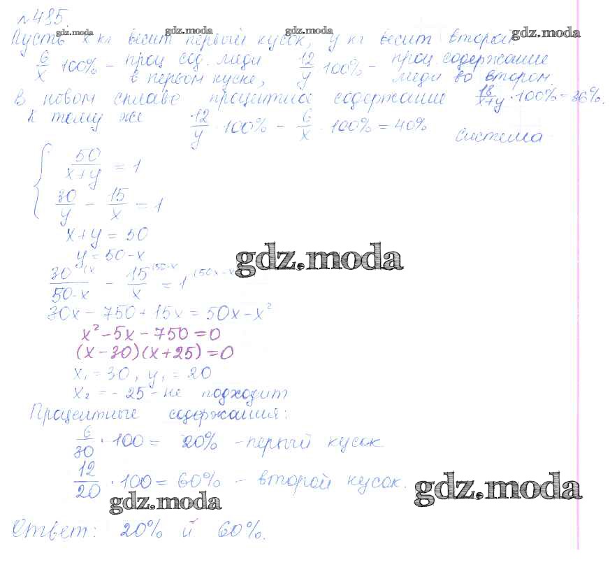 ГДЗ решение к заданию № 485 Алгебра 9 класс Дорофеев Г.В. Просвещение, Просвещение 2016, 2019 ФГОС бесплатно на гдз.мода!