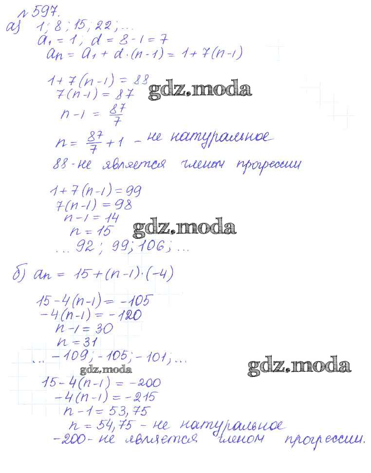 ОТВЕТ на задание № 597 Учебник по Алгебре 9 класс Дорофеев