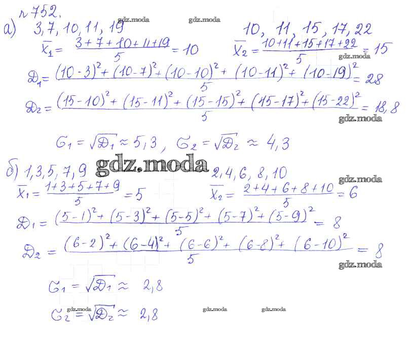 ОТВЕТ на задание № 752 Учебник по Алгебре 9 класс Дорофеев