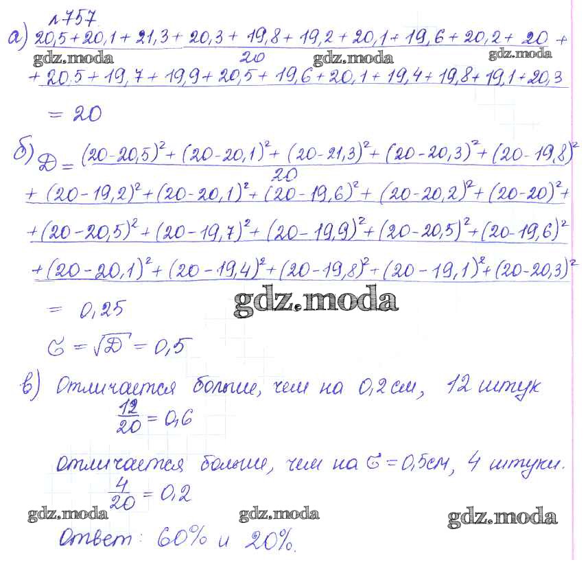 ОТВЕТ на задание № 757 Учебник по Алгебре 9 класс Дорофеев