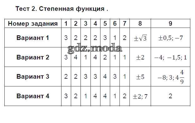 ГДЗ решение к заданию № Тест 2. Степенная функция Алгебра 9 класс Тематические тесты Дудницын Ю.П. Просвещение 2017 ФГОС бесплатно на гдз.мода!