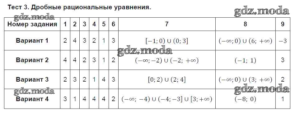 ГДЗ решение к заданию № Тест 3. Дробные рациональные уравнения Алгебра 9 класс Тематические тесты Дудницын Ю.П. Просвещение 2017 ФГОС бесплатно на гдз.мода!