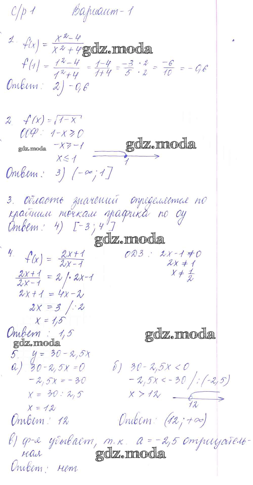 ОТВЕТ на задание № вариант 1 Самостоятельные и контрольные работы по Алгебре 9 класс Глазков УМК