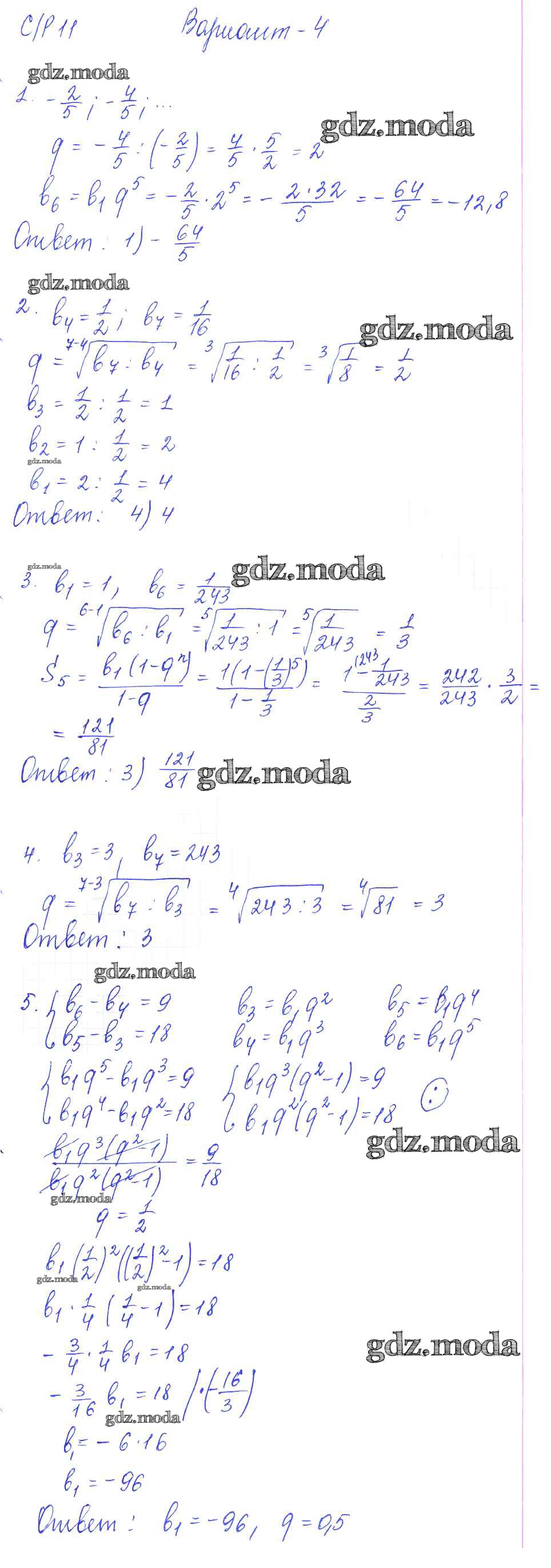 ОТВЕТ на задание № вариант 4 Самостоятельные и контрольные работы по Алгебре 9 класс Глазков УМК
