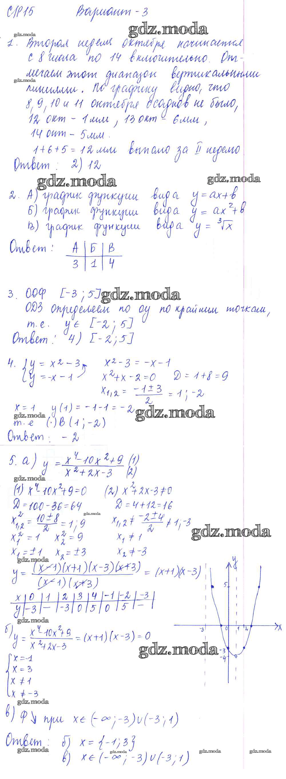 ОТВЕТ на задание № вариант 3 Самостоятельные и контрольные работы по Алгебре 9 класс Глазков УМК