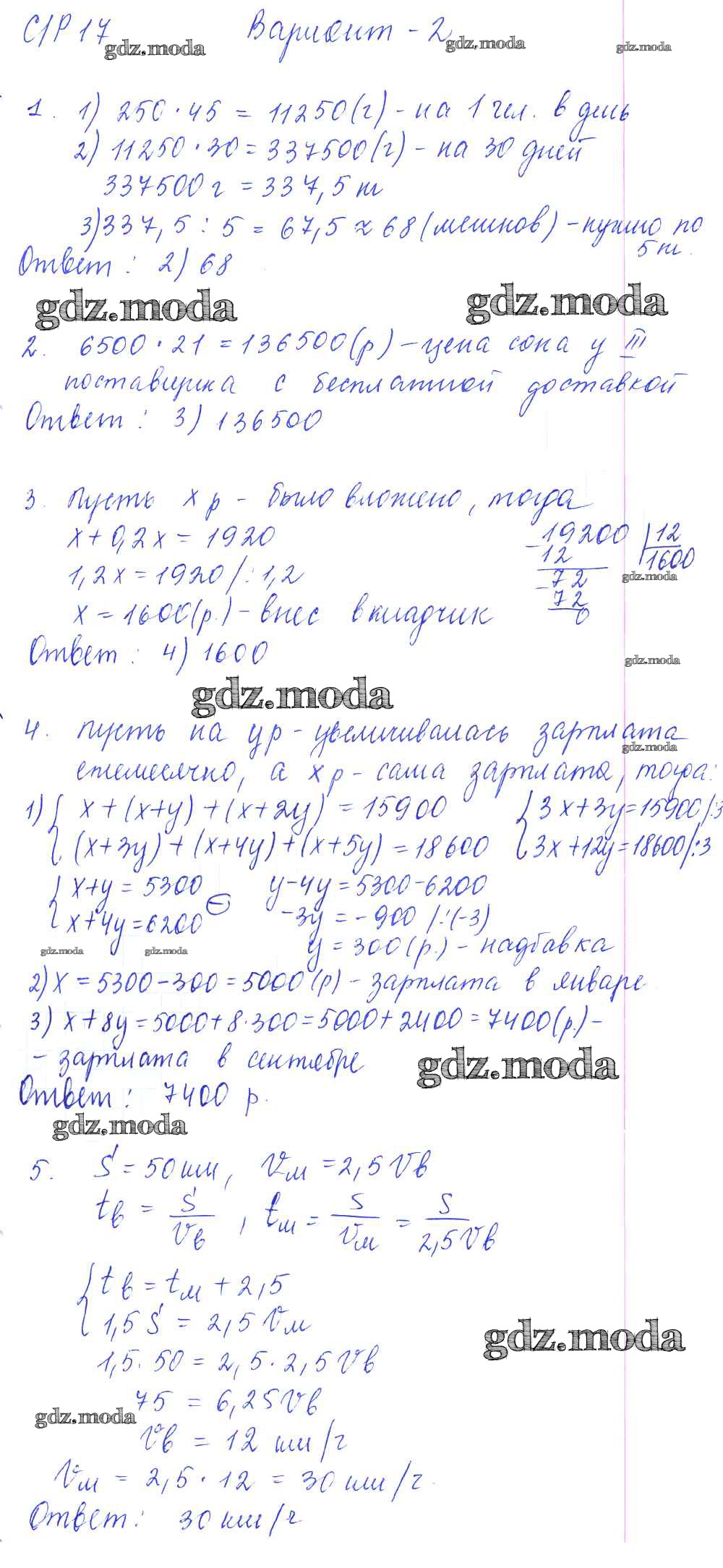 ОТВЕТ на задание № вариант 2 Самостоятельные и контрольные работы по Алгебре 9 класс Глазков УМК