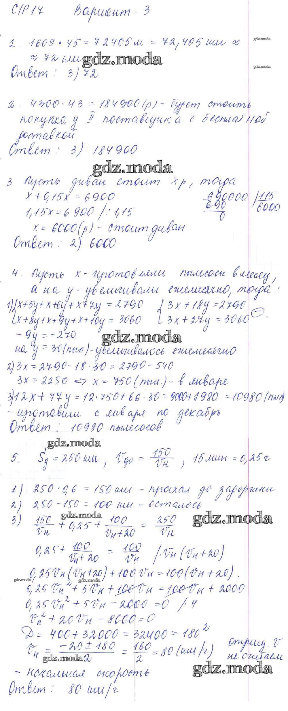 ОТВЕТ на задание № вариант 3 Самостоятельные и контрольные работы по Алгебре 9 класс Глазков УМК