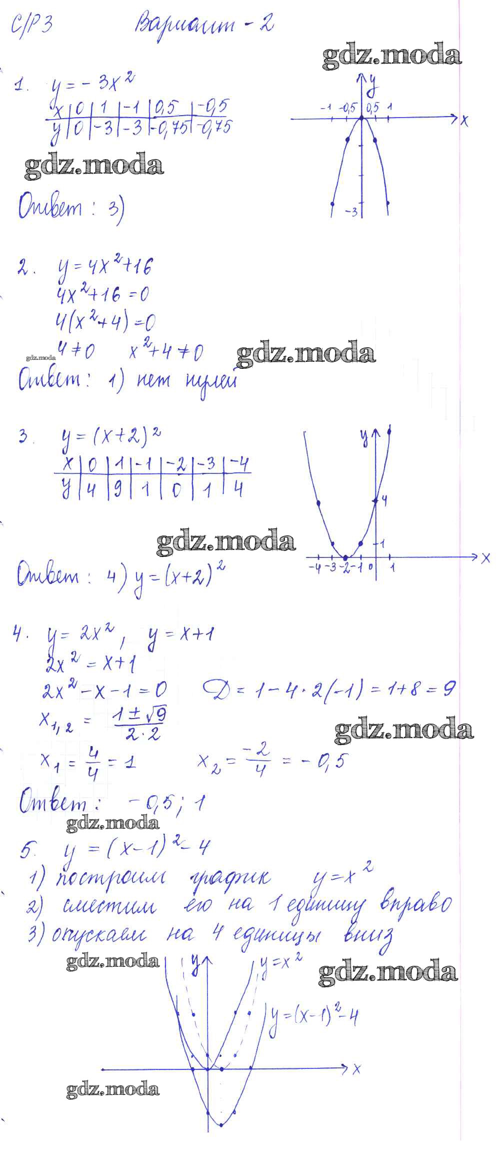 ОТВЕТ на задание № вариант 2 Самостоятельные и контрольные работы по Алгебре 9 класс Глазков УМК