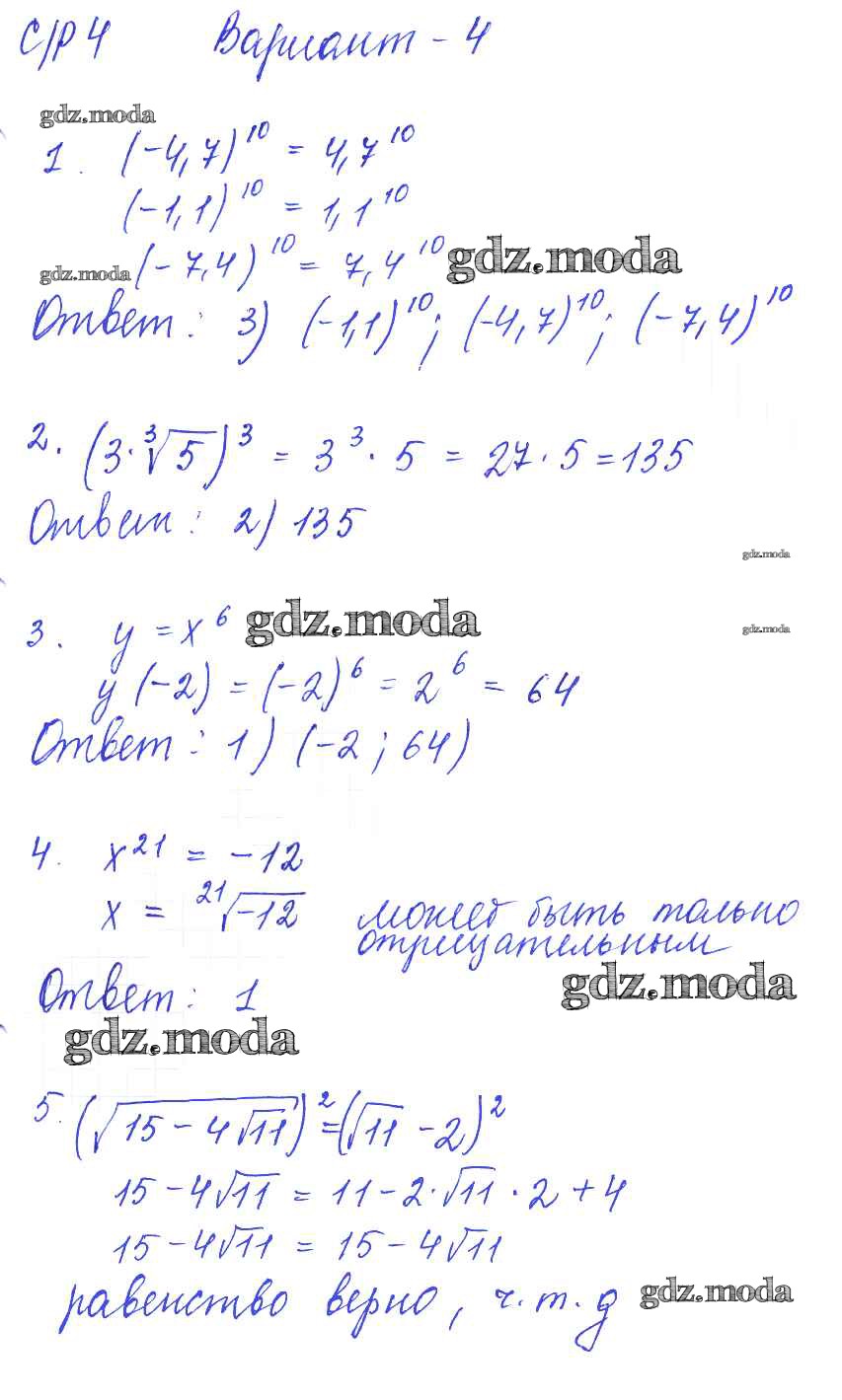 ГДЗ решение к заданию № вариант 4 Алгебра 9 класс самостоятельные и контрольные работы Глазков Ю.А. (к уч. Макарычева) Экзамен 2013 ФГОС бесплатно на гдз.мода!