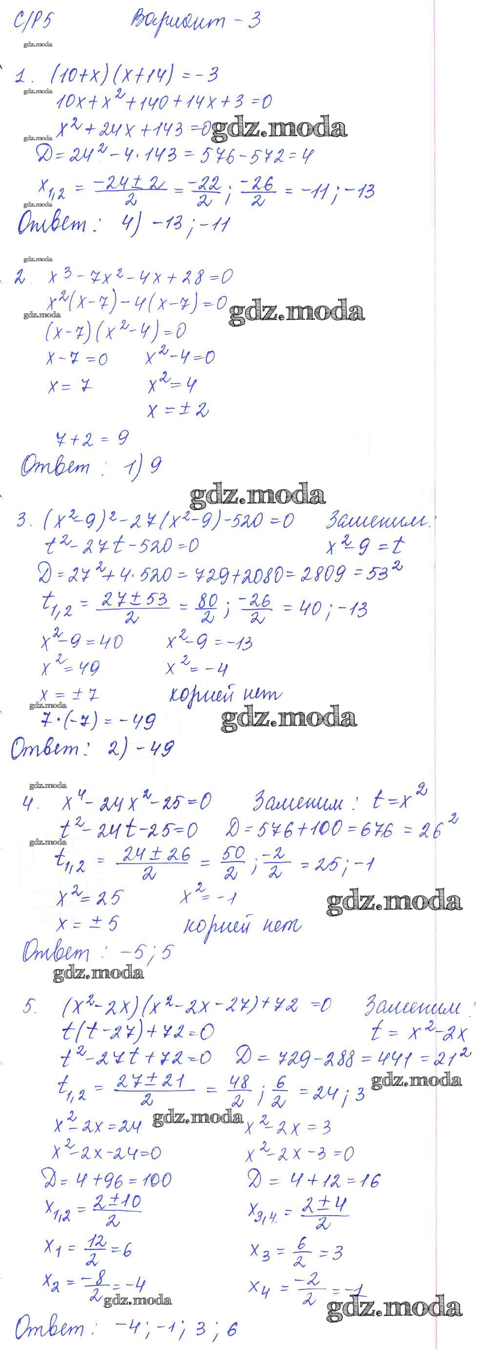 ОТВЕТ на задание № вариант 3 Самостоятельные и контрольные работы по Алгебре 9 класс Глазков УМК