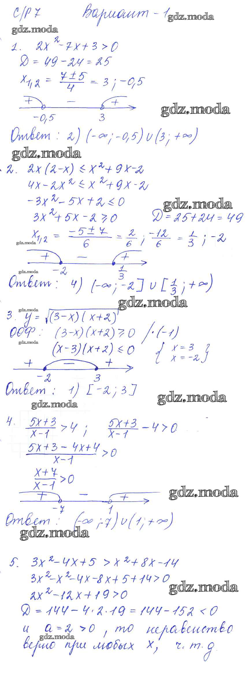 ГДЗ решение к заданию № вариант 1 Алгебра 9 класс самостоятельные и контрольные работы Глазков Ю.А. (к уч. Макарычева) Экзамен 2013 ФГОС бесплатно на гдз.мода!