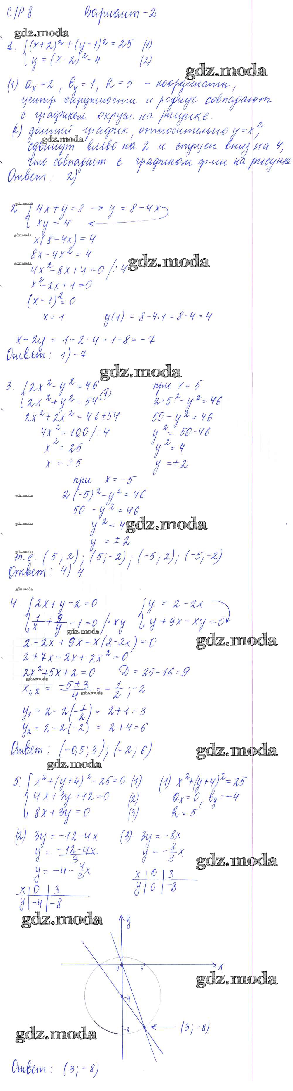 ОТВЕТ на задание № вариант 2 Самостоятельные и контрольные работы по Алгебре 9 класс Глазков УМК