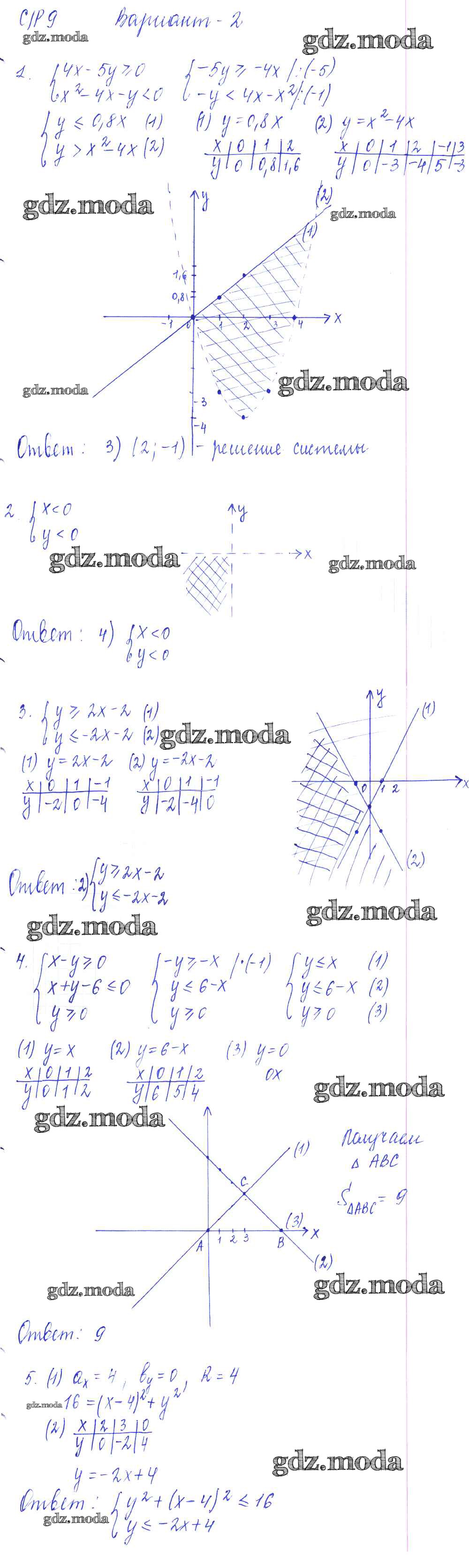 ОТВЕТ на задание № вариант 2 Самостоятельные и контрольные работы по Алгебре 9 класс Глазков УМК