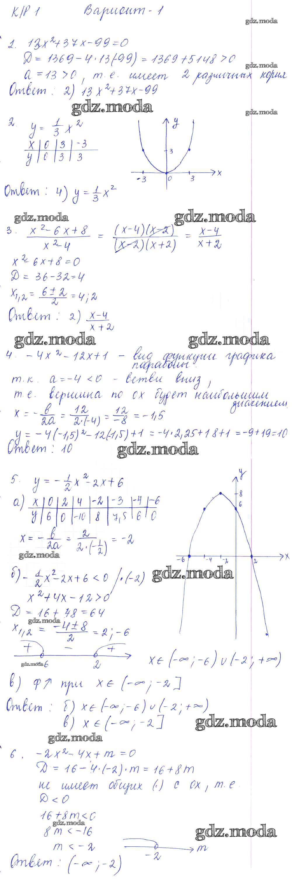ГДЗ решение к заданию № вариант 1 Алгебра 9 класс самостоятельные и контрольные работы Глазков Ю.А. (к уч. Макарычева) Экзамен 2013 ФГОС бесплатно на гдз.мода!