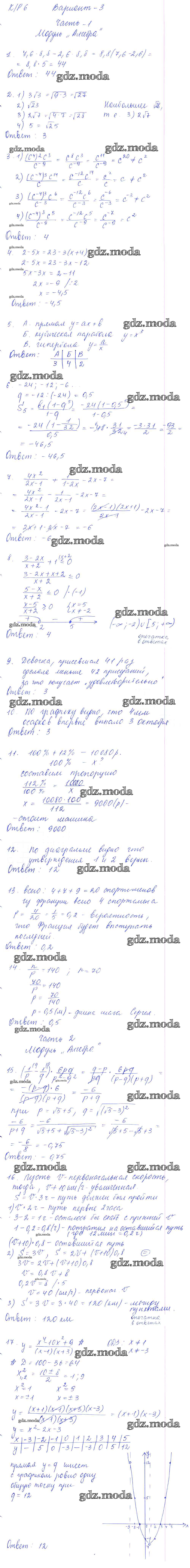 ОТВЕТ на задание № вариант 3 Самостоятельные и контрольные работы по Алгебре 9 класс Глазков УМК