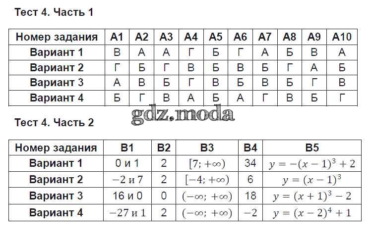 ГДЗ решение к заданию № Тест №4 Алгебра 9 класс Тесты Ключникова Е.М. (к уч. Мордковича) Экзамен 2011 ФГОС бесплатно на гдз.мода!