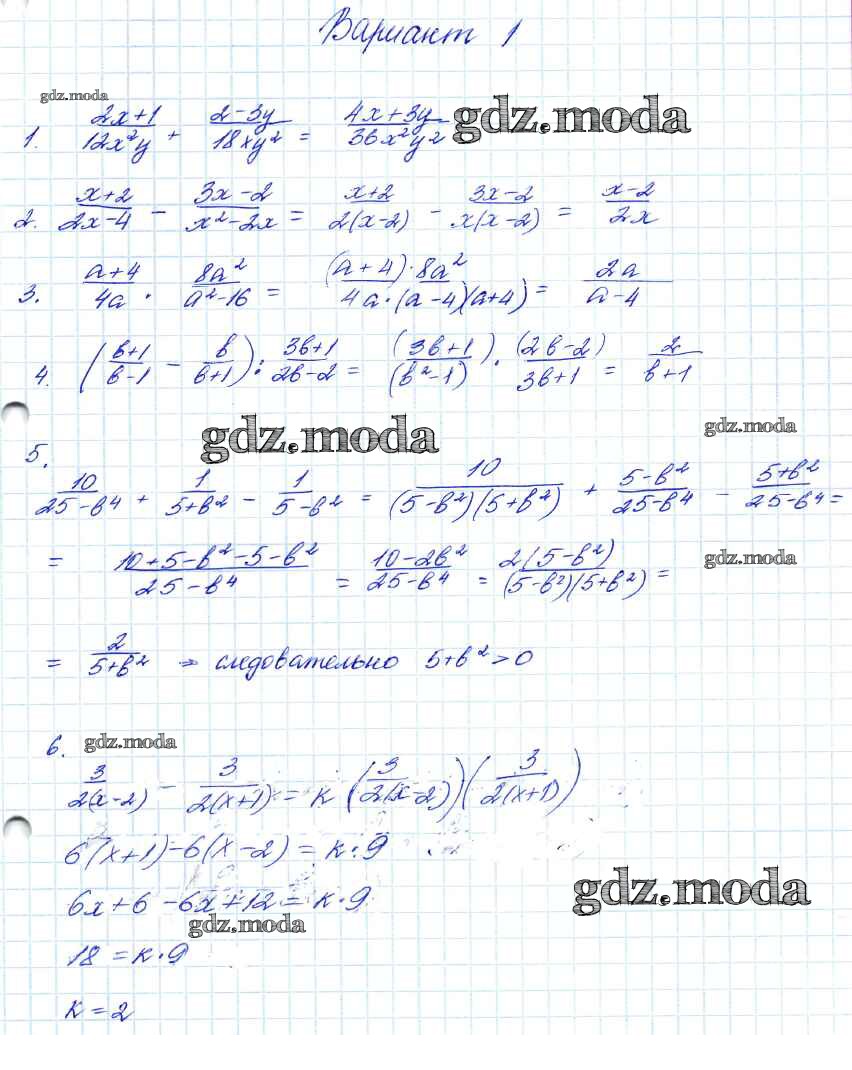 ОТВЕТ на задание № 1 Контрольные работы по Алгебре 7-9 класс Мордкович Углубленный уровень
