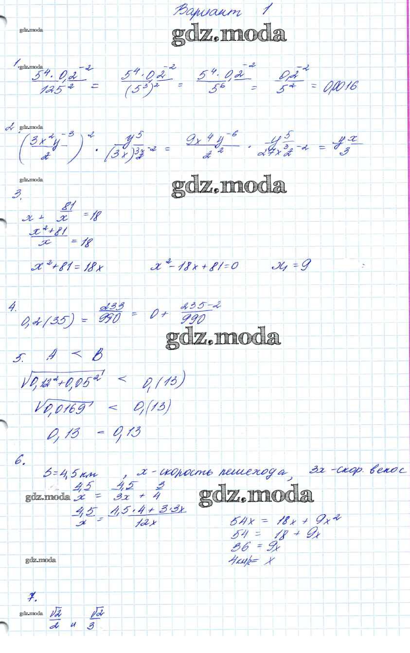 ОТВЕТ на задание № 1 Контрольные работы по Алгебре 7-9 класс Мордкович Углубленный уровень