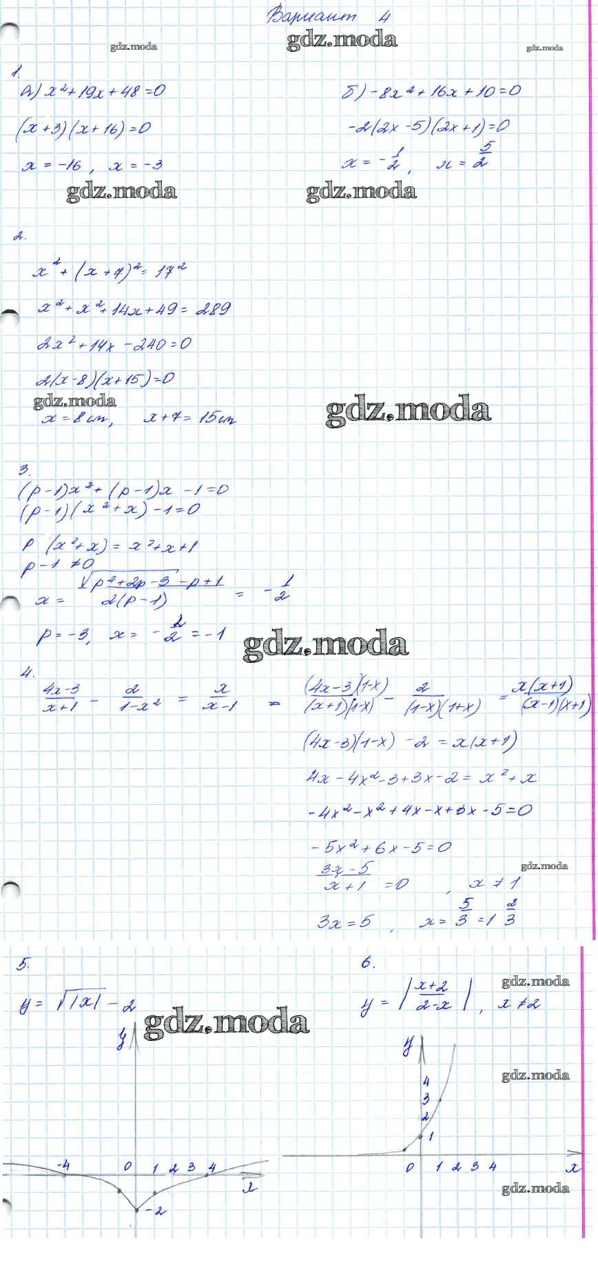 ГДЗ решение к заданию № 4 Алгебра 7-9 классы контрольные работы Мордкович А.Г. Мнемозина 2016 Углубленный уровень ФГОС бесплатно на гдз.мода!