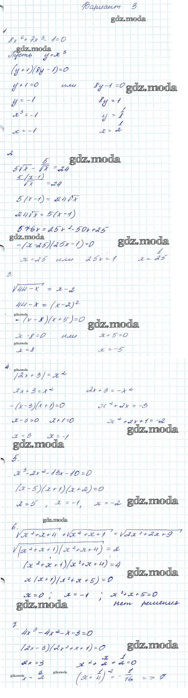 ОТВЕТ на задание № 3 Контрольные работы по Алгебре 7-9 класс Мордкович Углубленный уровень