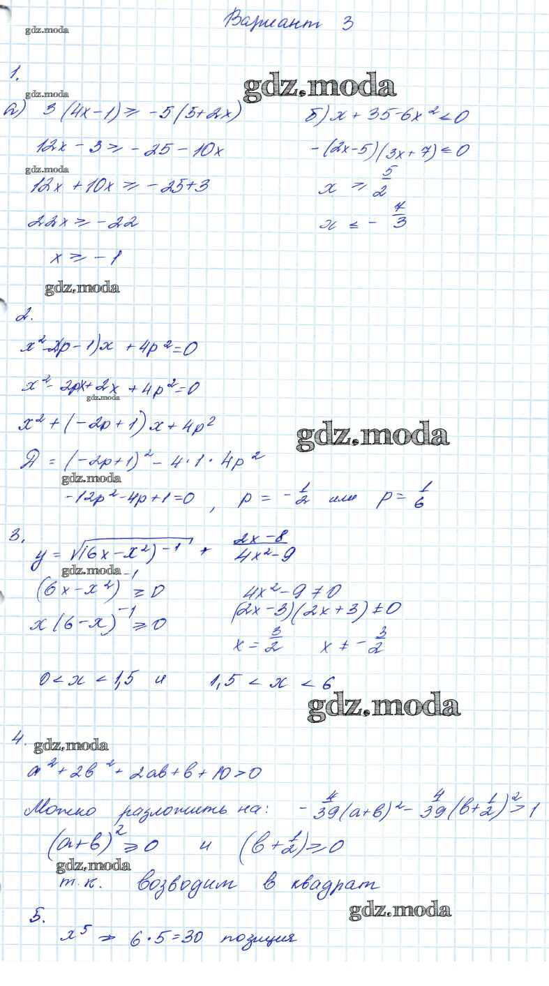 ГДЗ решение к заданию № 3 Алгебра 7-9 классы контрольные работы Мордкович А.Г. Мнемозина 2016 Углубленный уровень ФГОС бесплатно на гдз.мода!