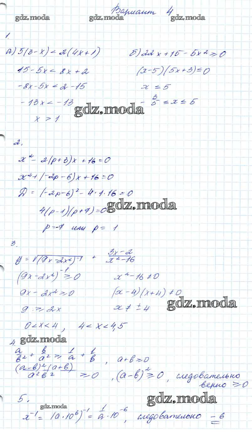 ГДЗ решение к заданию № 4 Алгебра 7-9 классы контрольные работы Мордкович А.Г. Мнемозина 2016 Углубленный уровень ФГОС бесплатно на гдз.мода!