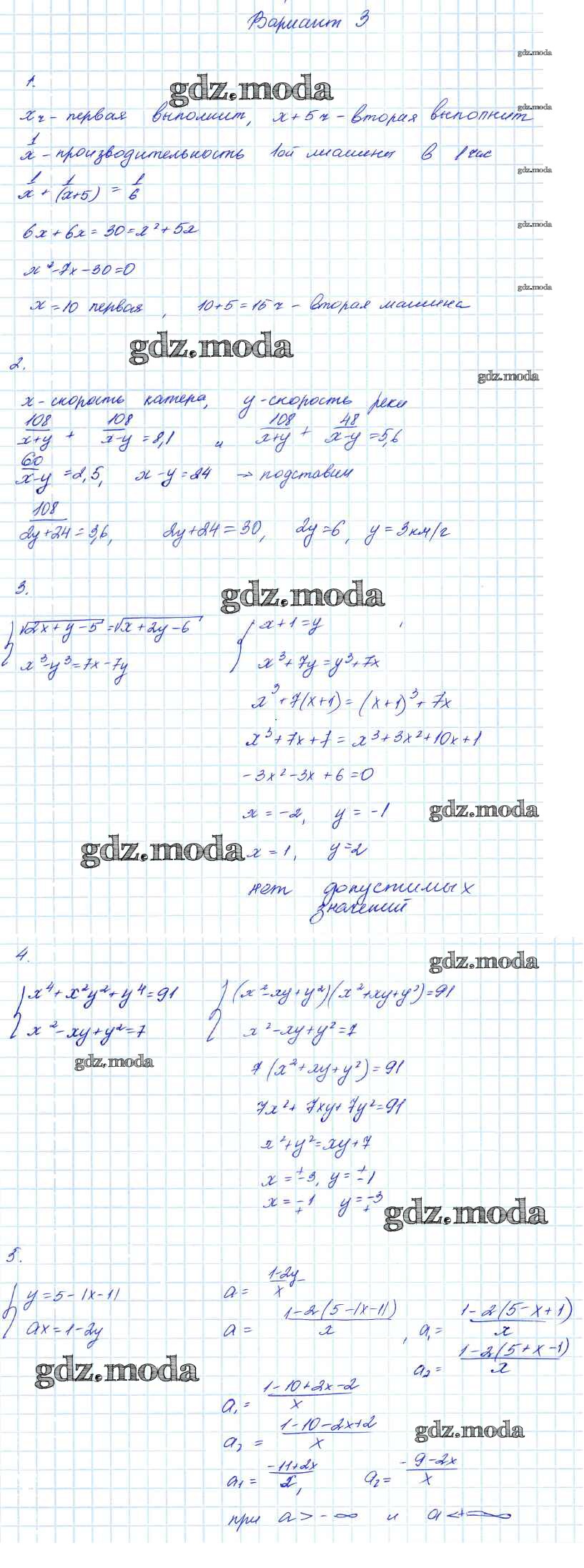 ОТВЕТ на задание № 3 Контрольные работы по Алгебре 7-9 класс Мордкович Углубленный уровень