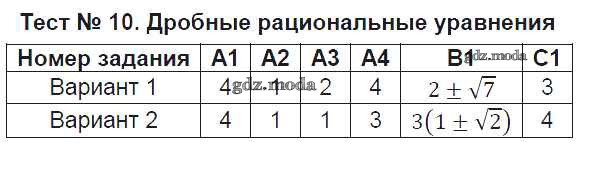 ГДЗ решение к заданию № Тест №10. Дробные рациональные уравнения Алгебра 9 класс контрольно-измерительные материалы (КИМ) Мартышова Л.И. ВАКО 2015 ФГОС бесплатно на гдз.мода!