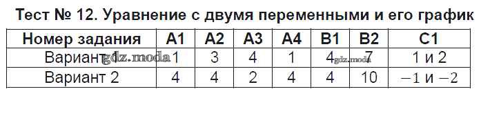 ГДЗ решение к заданию № Тест №12. Уравнение с двумя переменными и его график Алгебра 9 класс контрольно-измерительные материалы (КИМ) Мартышова Л.И. ВАКО 2015 ФГОС бесплатно на гдз.мода!