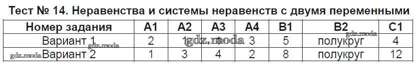 ОТВЕТ на задание № Тест №14. Неравенства и системы неравенств с двумя переменными Контрольно-измерительные материалы (КИМ) по Алгебре 9 класс Мартышова