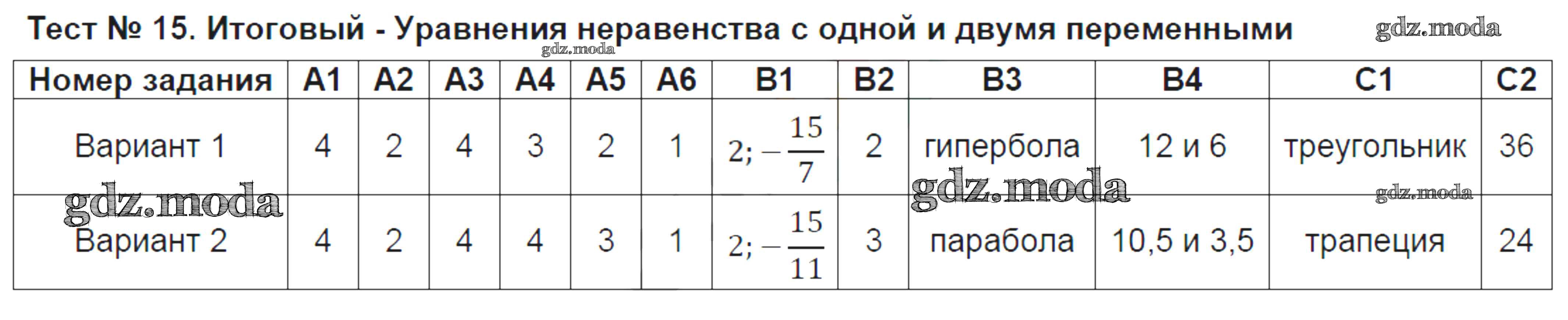 ГДЗ решение к заданию № Тест №15. Итоговый - Уравнения неравенства с одной и двумя переменными Алгебра 9 класс контрольно-измерительные материалы (КИМ) Мартышова Л.И. ВАКО 2015 ФГОС бесплатно на гдз.мода!