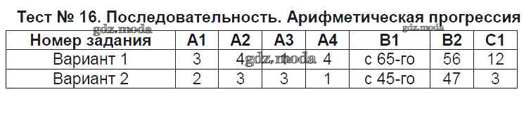 ГДЗ решение к заданию № Тест №16. Последовательность. Арифметическая прогрессия Алгебра 9 класс контрольно-измерительные материалы (КИМ) Мартышова Л.И. ВАКО 2015 ФГОС бесплатно на гдз.мода!