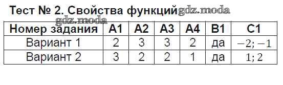 ОТВЕТ на задание № Тест №2. Свойства функций Контрольно-измерительные материалы (КИМ) по Алгебре 9 класс Мартышова