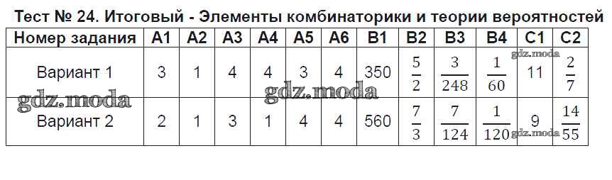 ГДЗ решение к заданию № Тест №24. Итоговый - Элементы комбинаторики и теории вероятностей Алгебра 9 класс контрольно-измерительные материалы (КИМ) Мартышова Л.И. ВАКО 2015 ФГОС бесплатно на гдз.мода!