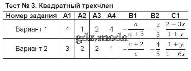 ГДЗ решение к заданию № Тест №3. Квадратный трехчлен Алгебра 9 класс контрольно-измерительные материалы (КИМ) Мартышова Л.И. ВАКО 2015 ФГОС бесплатно на гдз.мода!