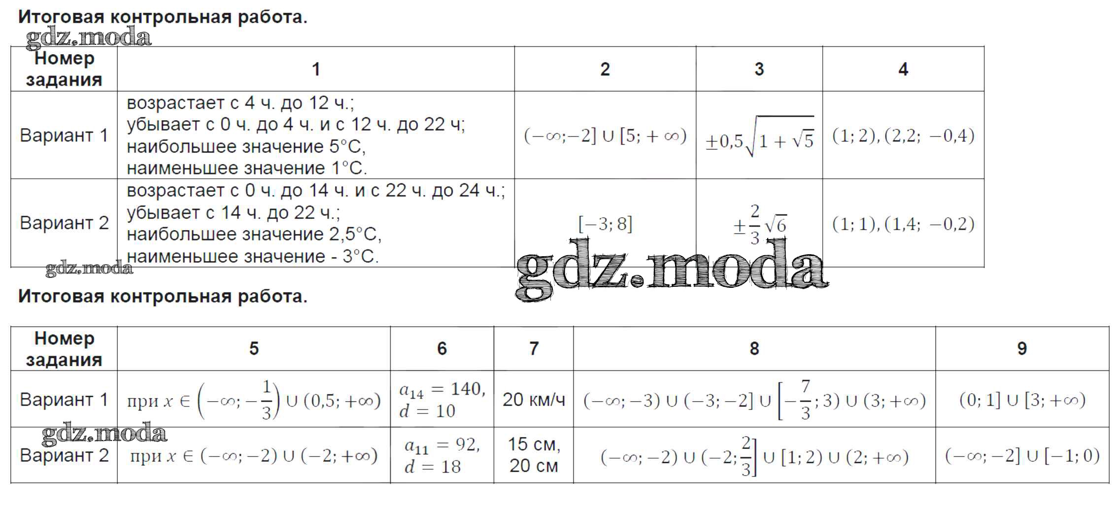 ОТВЕТ на задание № Итоговая КР-10 Контрольно-измерительные материалы (КИМ) по Алгебре 9 класс Мартышова