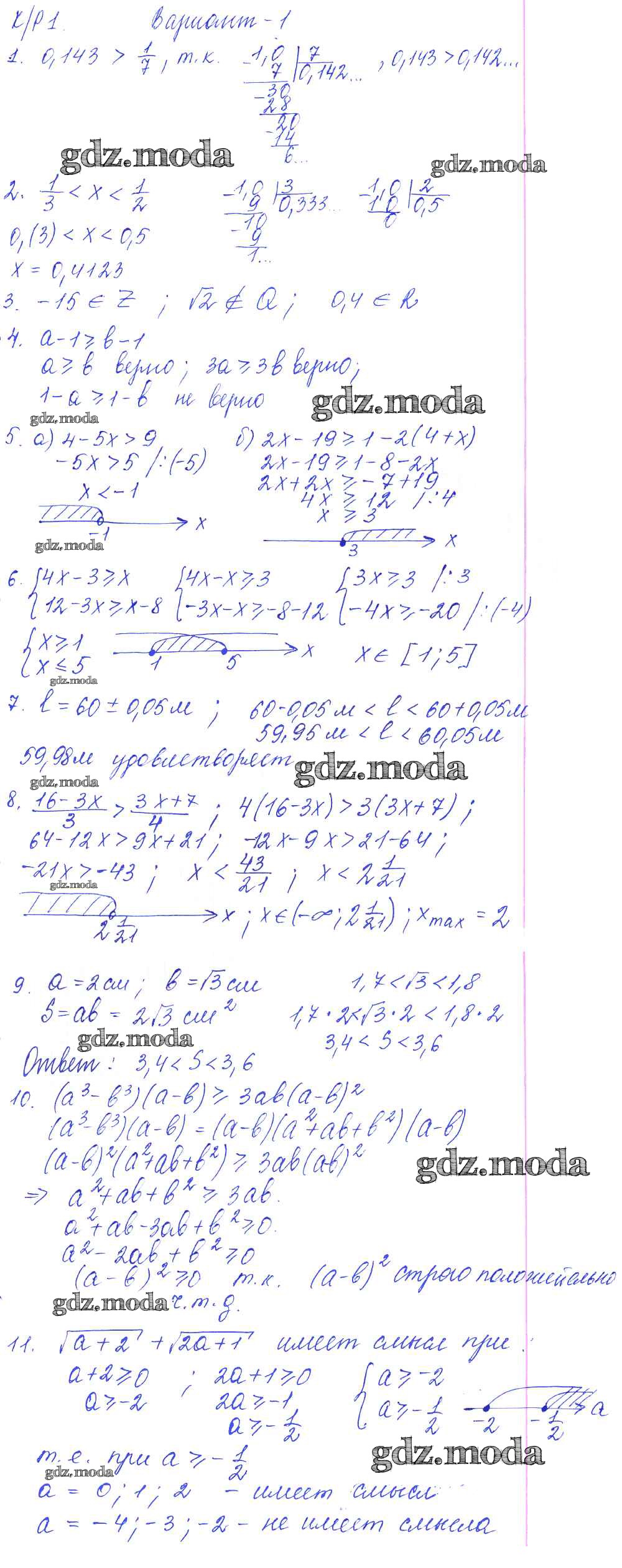 ОТВЕТ на задание № вариант №1 Контрольные работы по Алгебре 9 класс Кузнецова