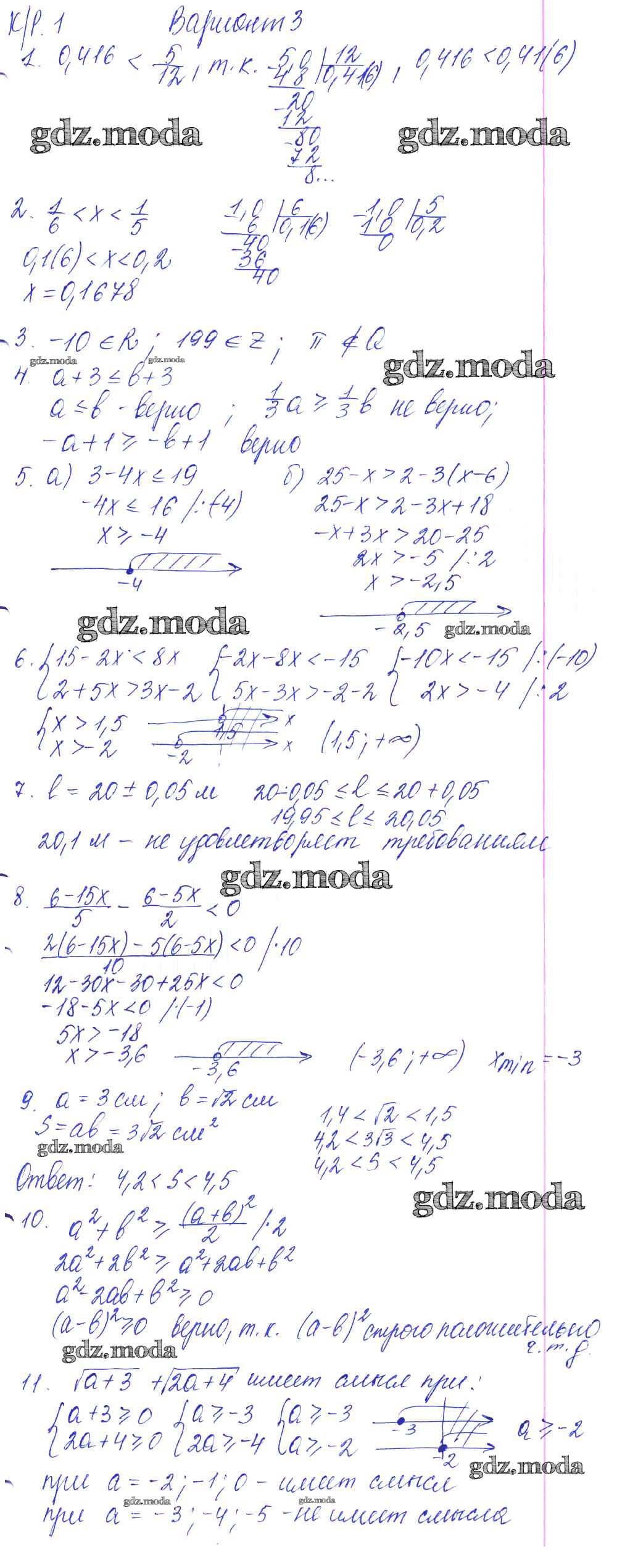 ГДЗ решение к заданию № вариант №3 Алгебра 9 класс контрольные работы Кузнецова Л.В. Просвещение 2016 ФГОС бесплатно на гдз.мода!