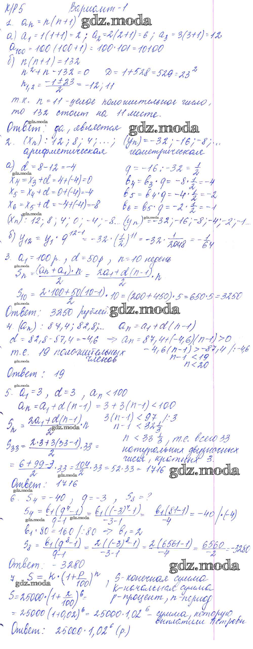 ОТВЕТ на задание № вариант №1 Контрольные работы по Алгебре 9 класс Кузнецова