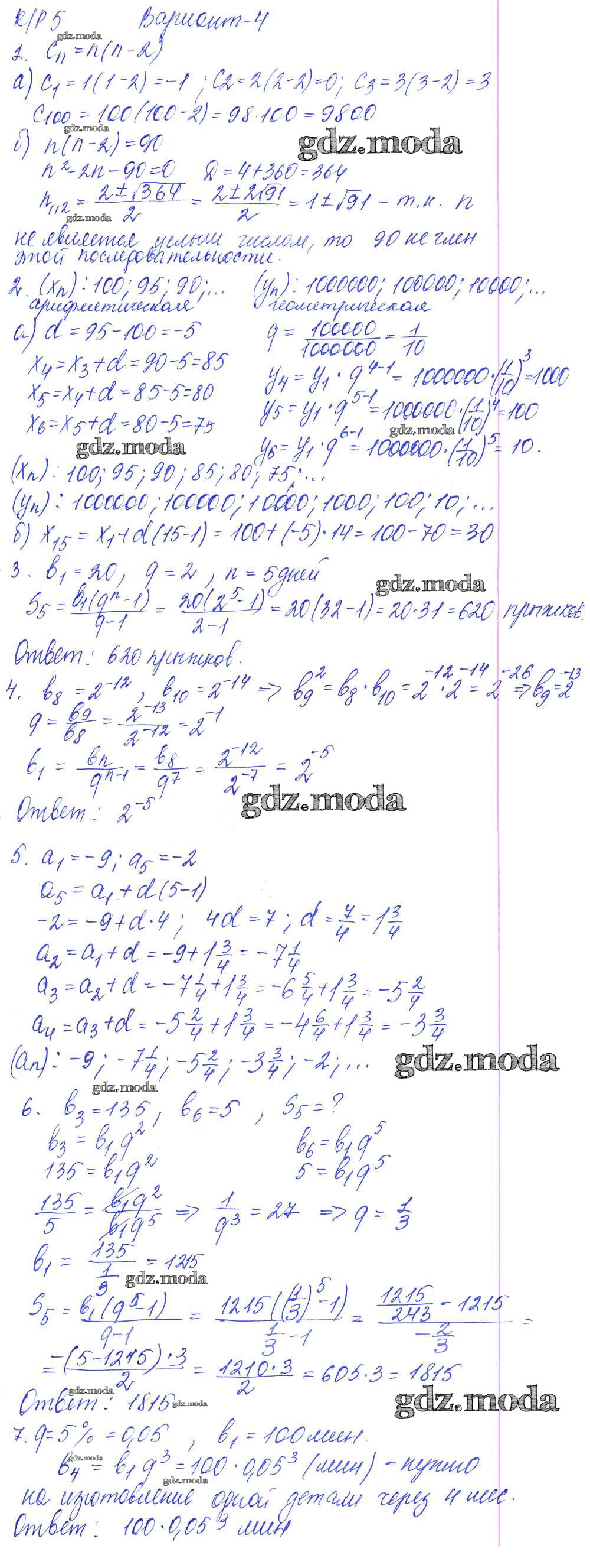 ОТВЕТ на задание № вариант №4 Контрольные работы по Алгебре 9 класс Кузнецова