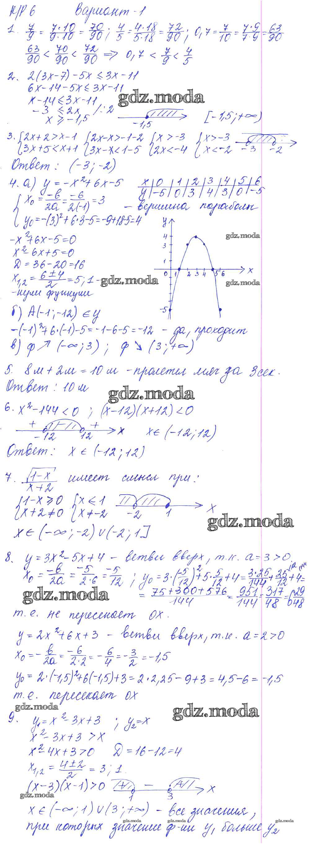 ГДЗ решение к заданию № вариант №1 Алгебра 9 класс контрольные работы Кузнецова Л.В. Просвещение 2016 ФГОС бесплатно на гдз.мода!