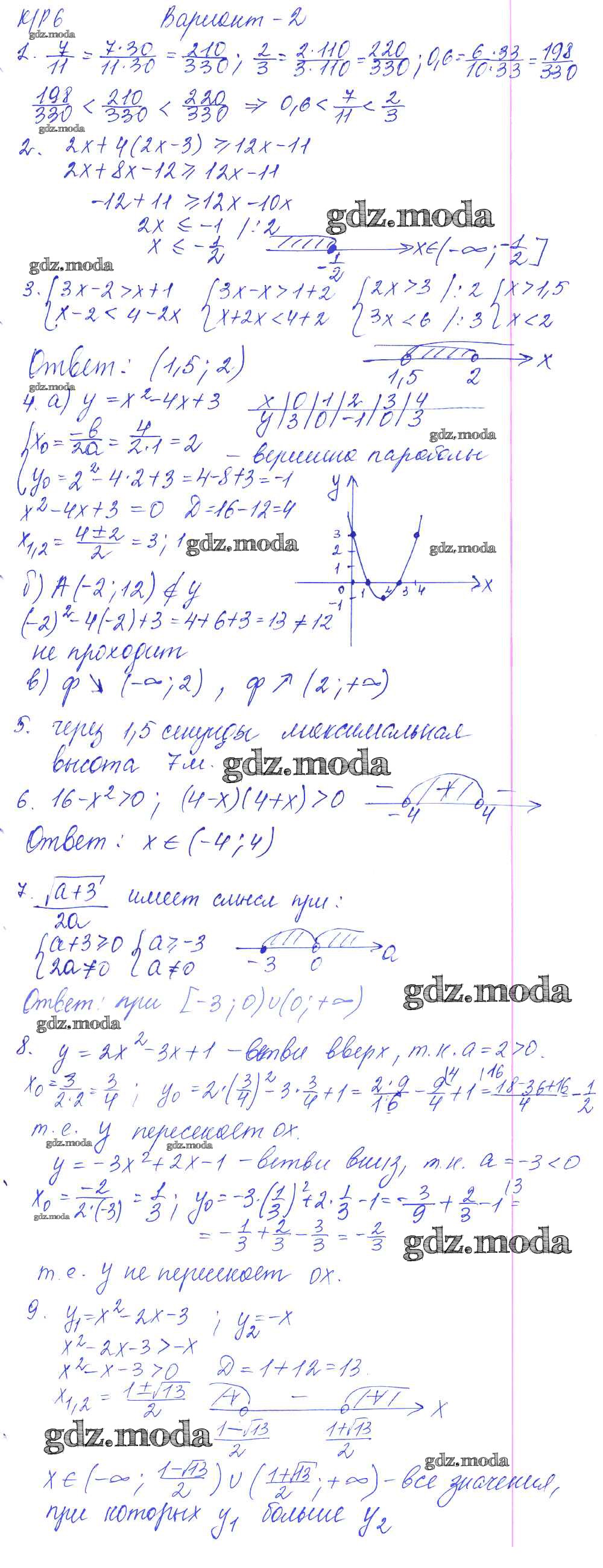ГДЗ решение к заданию № вариант №2 Алгебра 9 класс контрольные работы Кузнецова Л.В. Просвещение 2016 ФГОС бесплатно на гдз.мода!