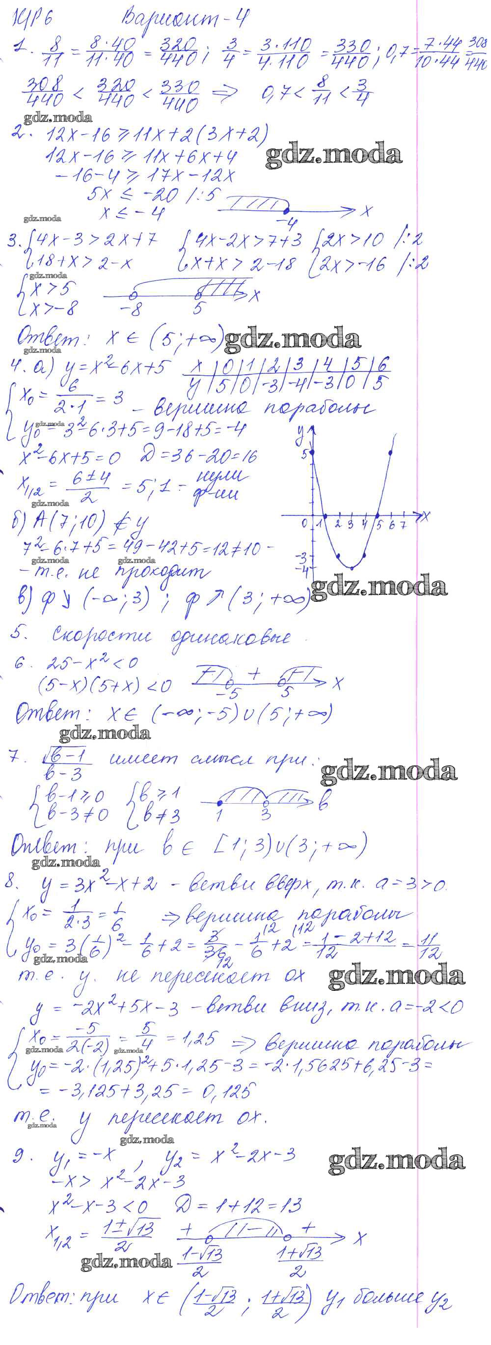 ГДЗ решение к заданию № вариант №4 Алгебра 9 класс контрольные работы Кузнецова Л.В. Просвещение 2016 ФГОС бесплатно на гдз.мода!