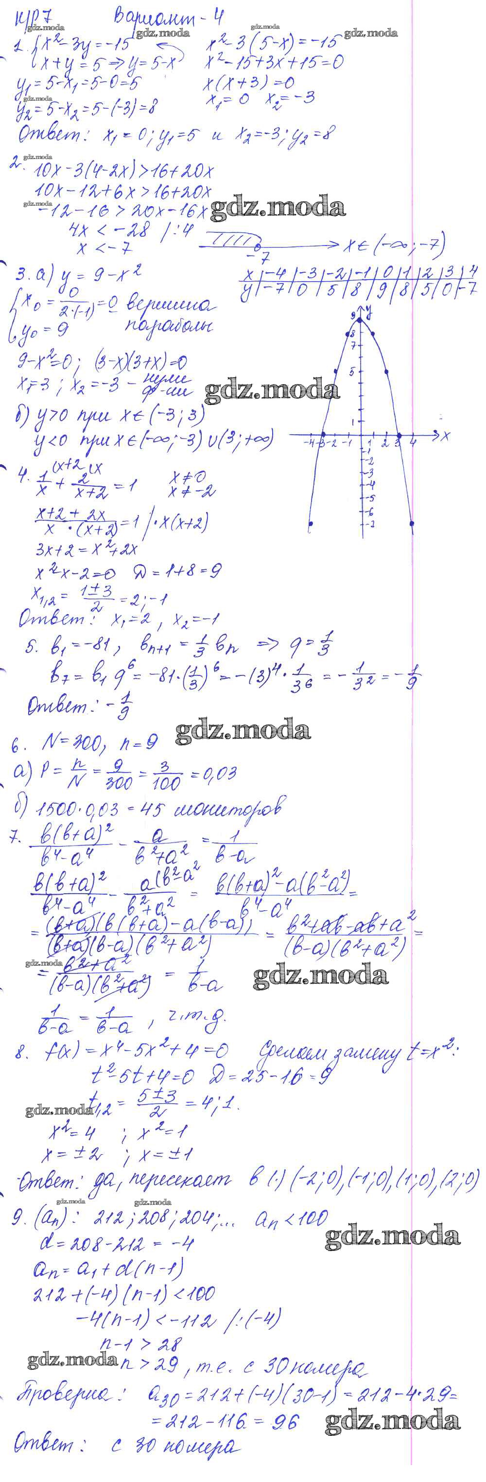 ГДЗ решение к заданию № вариант №4 Алгебра 9 класс контрольные работы Кузнецова Л.В. Просвещение 2016 ФГОС бесплатно на гдз.мода!